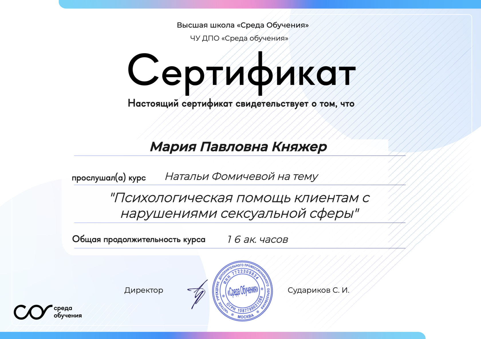Продолжительность сессии 60 минут. В случае опоздания клиента сессия не продлевается